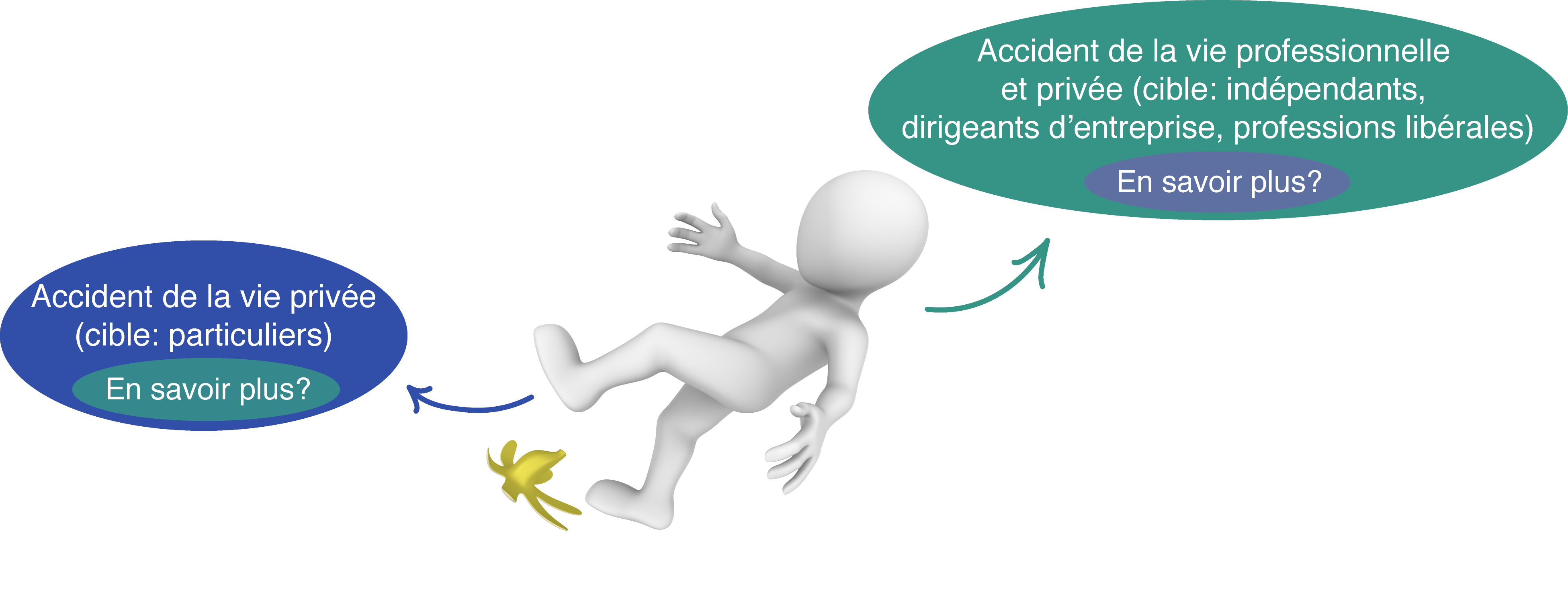 Vous pouvez également vous protéger en cas d’accident de votre vie privée et/ou professionnelle (pour les indépendants, dirigeants d’entreprise et les professions libérales). En savoir plus ? Faites votre choix ci-dessous :