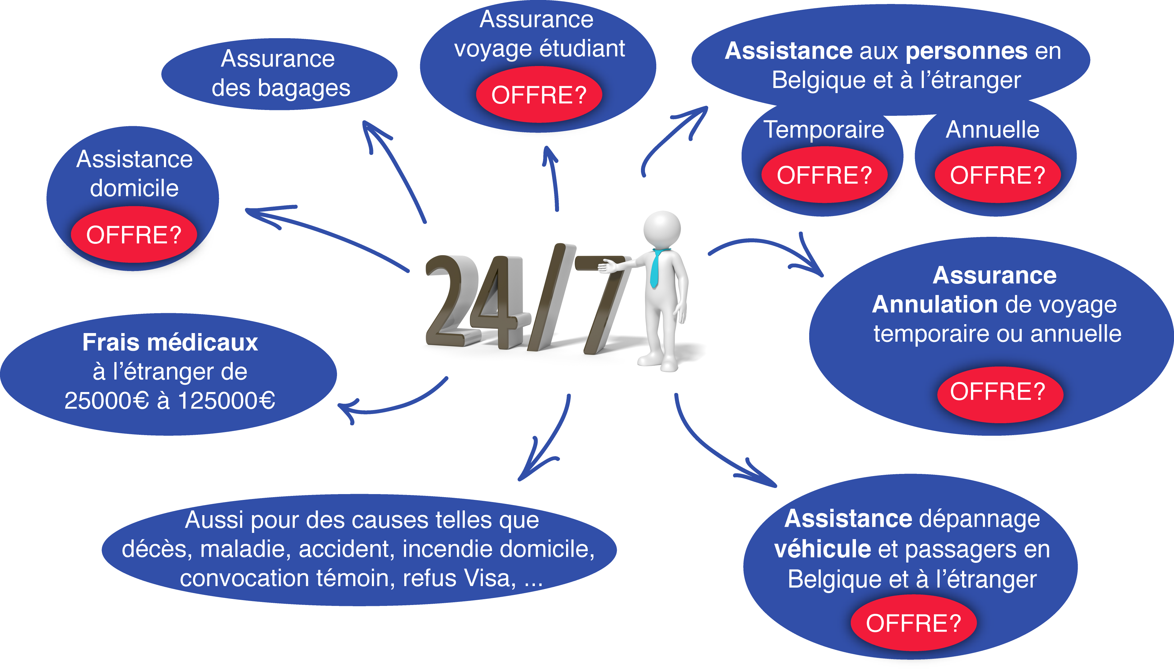 Grâce à ces garanties, vos frais en cas de panne, accident, rapatriement seront pris en charge par l’assurance partout en Belgique et à l’étranger. Vos soins de santé à l’étranger seront également couverts selon les couvertures du contrat choisi.